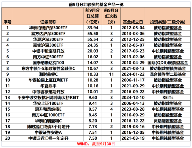 - 前9月基金分红超1800亿元
