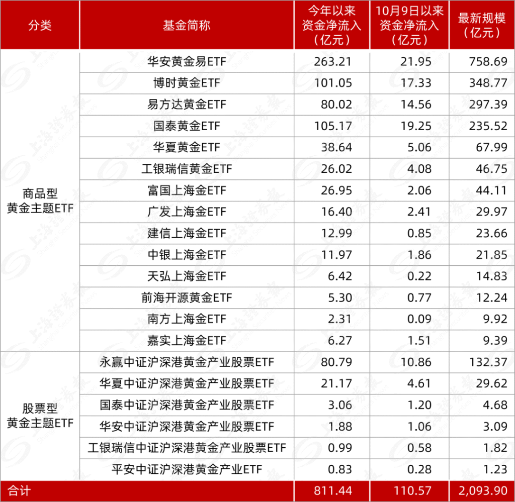 - 黄金主题ETF年内资金净买入超800亿元