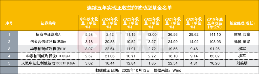 Wind数据显示,截至今年10月13日,在2020年至2025年的五年间每年均实现正收益且今年收益也为正的权益基金共有41只。
