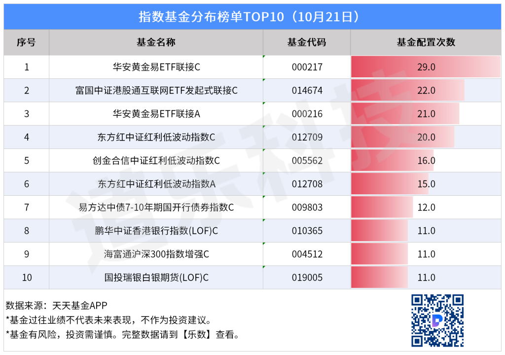 - 指数基金榜单中,华安黄金易ETF联接C、富国中证港股通互联网ETF发起式联接C依然是关注焦点,投顾机构在震荡行情中加配黄金与红利指数产品,以降低组合波动、增强防御性。