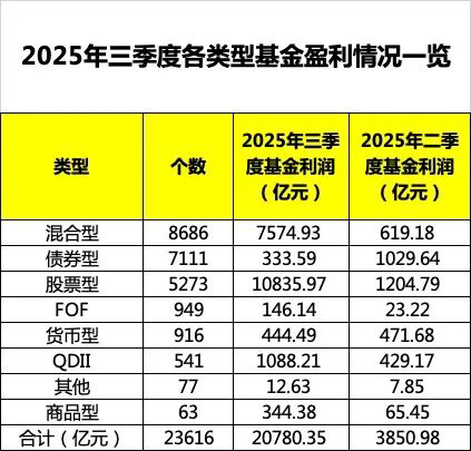 数据显示,三季度,公募基金产品整体盈利高达2.08万亿元,环比暴增4.4倍。这也是继2024年四季度、今年一季度、二季度盈利之后,公募又一个“赚钱季”,且实现逐季递增。易方达、华夏、嘉实等3家基金公司盈利超千亿元。