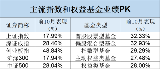 Wind数据显示,若不包括2025年成立的新基金,前10月权益基金整体获得28.00%的单位净值增长率(包括指数型、混合型、股票型,不含FOF、QDII,仅算主代码,仅算披露10月31日业绩基金),表现明显好于上证指数等主流指数。