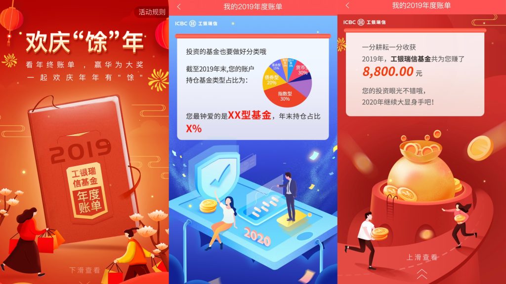 工银瑞信以“年度投资回顾”为主题,从多角度展示用户的投资成果,通过年度账单形式直观呈现收益表现与投资关键词。活动设置了分享抽奖机制,用户可生成专属账单并分享到社交平台,以“晒收益”带动二次传播,扩大产品热度。