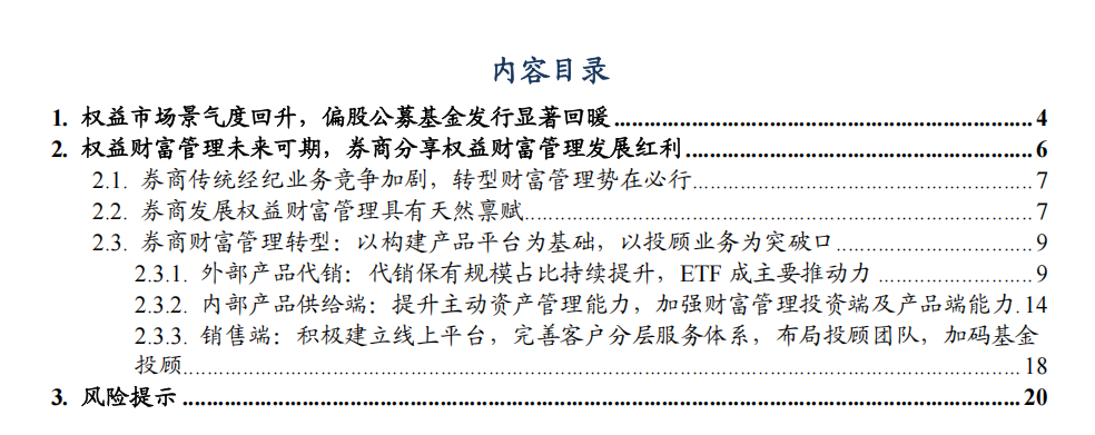 本报告认为,在权益市场景气度回升、居民资产配置向权益类转移的趋势下,权益财富管理市场未来潜力巨大。券商作为主要参与者,凭借其在投资能力、资产获取、研究和客户基础等方面的天然优势,正加速从传统经纪业务向财富管理转型。报告指出,通过构建产品平台、大力发展投顾业务,尤其是基金投顾这一“买方模式”核心,券商将能充分分享行业发展红利,实现差异化竞争与可持续增长。